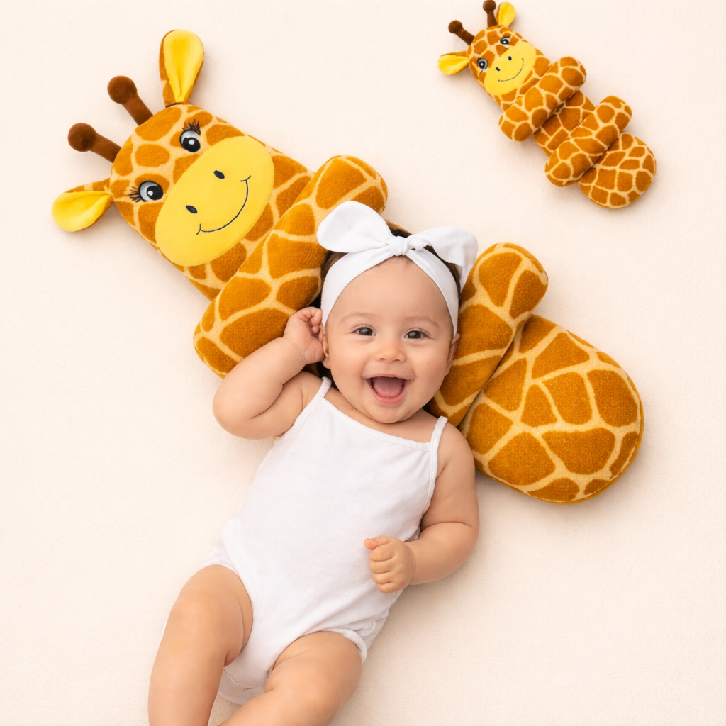Create a safer, calmer, and more comfortable sleep environment for your little one with our Baby Anti-Roll Sliding Pillow, thoughtfully designed to support newborns during rest and nap time. Combining gentle support, premium materials, and an irresistibly cute giraffe design, this pillow is a perfect blend of safety, comfort, and style.
