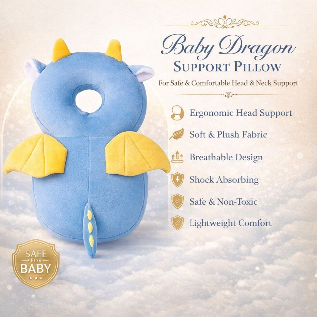 Made with ultra-soft, baby-safe materials, this lightweight head protector cushions accidental falls while keeping your little one comfortable and happy. The adorable dragon design makes safety fun, so babies love wearing it and parents feel reassured.