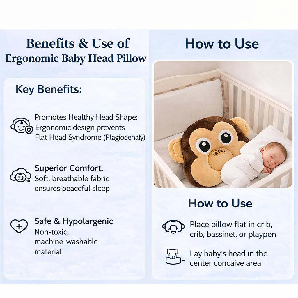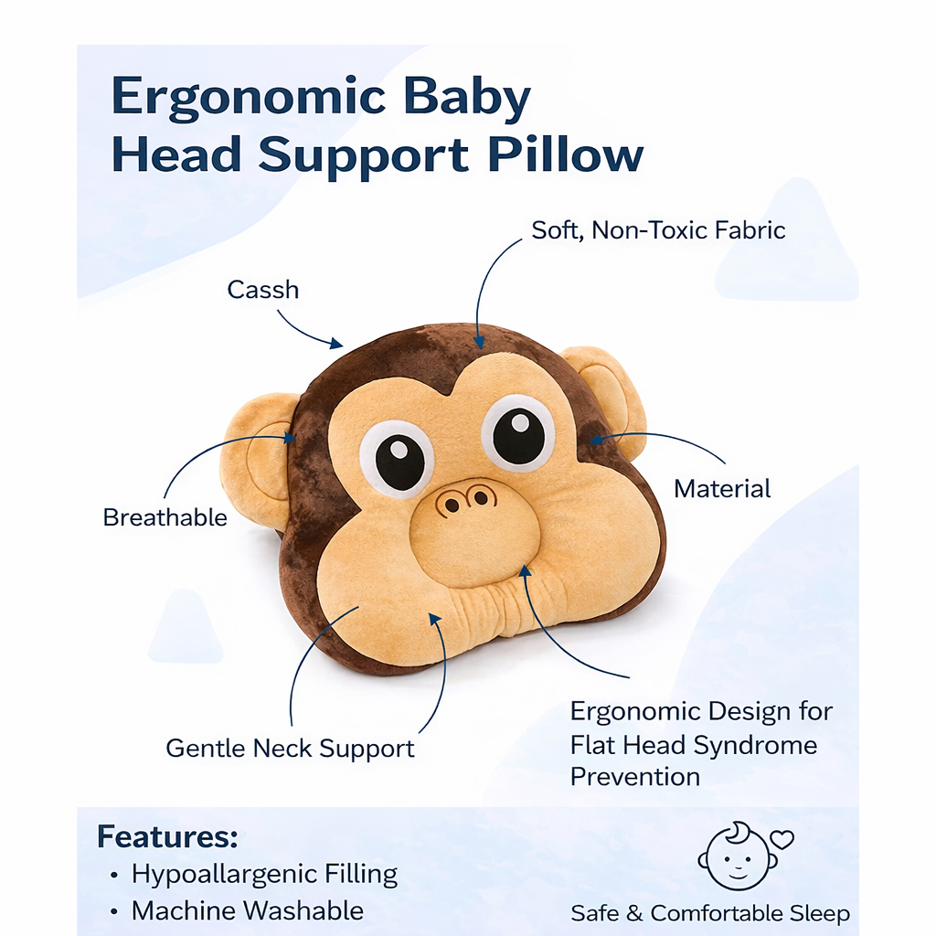 Make nap time and sleep time extra cozy with our Baby Monkey Pillow, thoughtfully designed to provide gentle head and neck support for babies. Crafted from ultra-soft, baby-safe fabric, this adorable monkey-shaped pillow cradles your little oneβs head comfortably while adding a playful touch to their nursery.